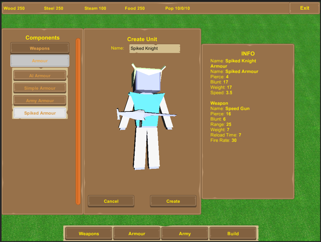 A RTS concept developed for BTech project. The main focus of the concept was to facilitate a greater sense of creativity for the players by allowing them to create their own units for their faction. By making the weapons and armour use a series of components, it made it possible for the various parts to be used interchangeably. Thus the player could create their own special units to use.